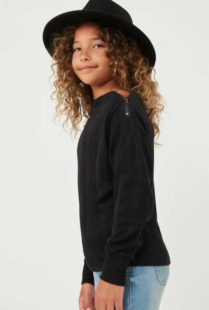 Coupon ๐ Hayden ๐ง Girls Textured Zipper Detail Long Sleeve Knit Top ๐