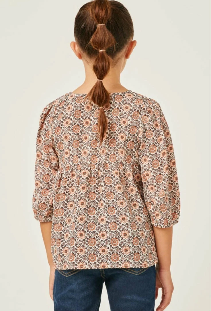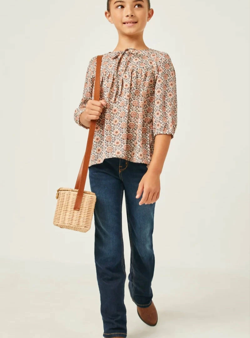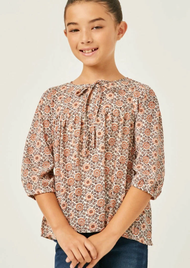 Best Sale ๐ Hayden ๐ง Girls Tie Neck Floral Printed Peasant Top โญ