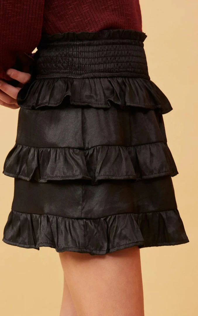 Brand new ๐ Itty Bitty Kid’s Boutique Black Shimmery Ruffle Tiered Smocked Waist ๐ Skirt ๐