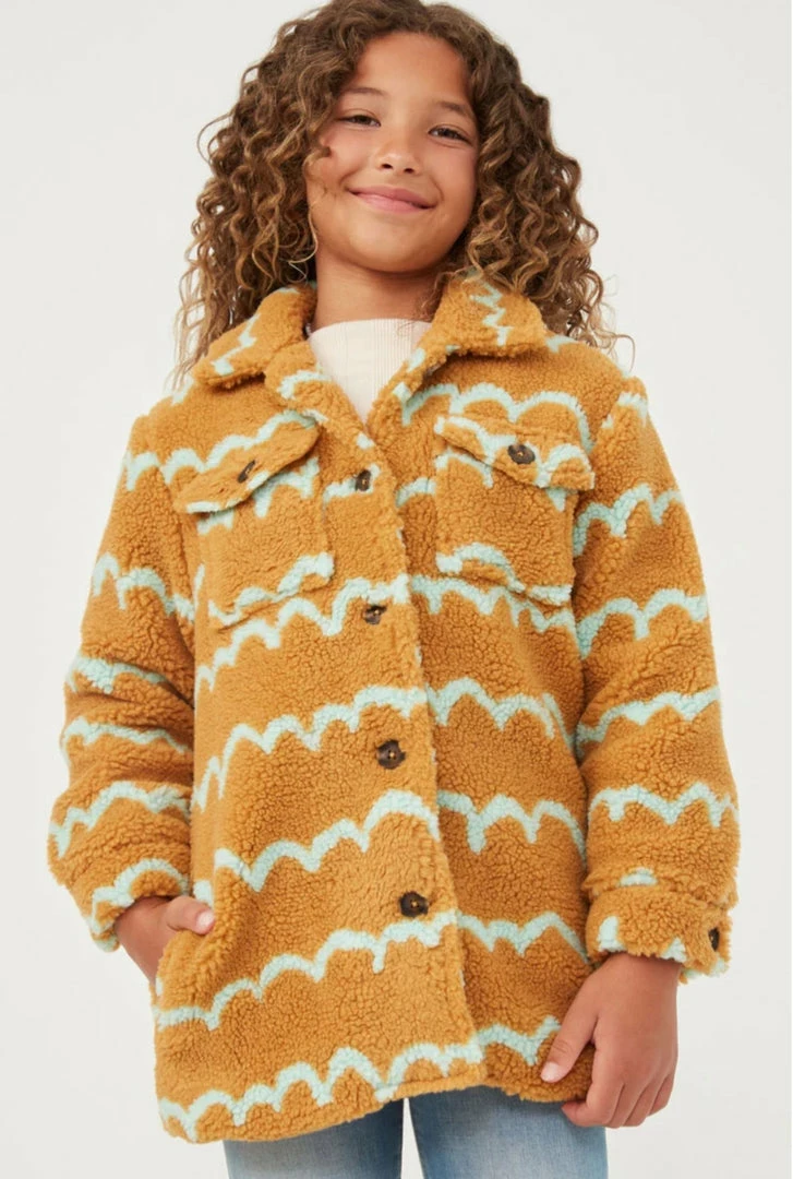 Cheapest 👍 Itty Bitty Kid’s Boutique Collared Check Pocket Stripe Sherpa Jacket 👧 Girls 😉