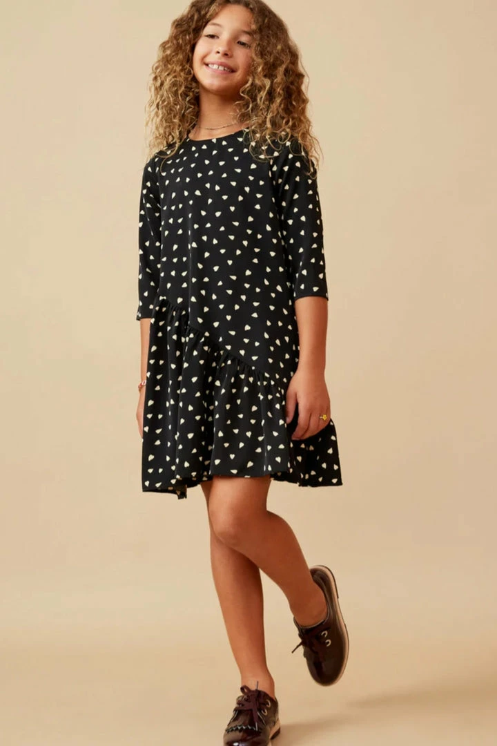 Coupon ๐ Itty Bitty Kid’s Boutique Ditsy Heart Asymmetric Ruffle ๐ Dress ๐ง Girls ๐งจ