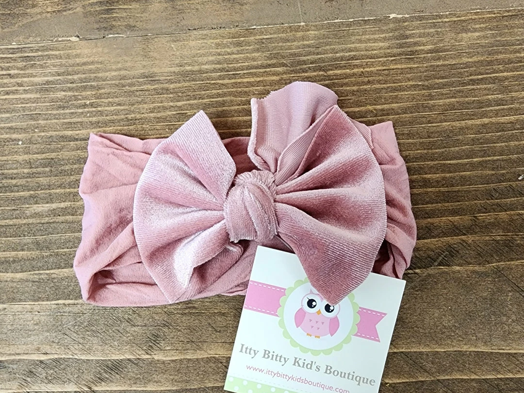 New ๐ฅฐ Itty Bitty Kid’s Boutique Dusty Pink Velvet Bow Nylon Headband ๐