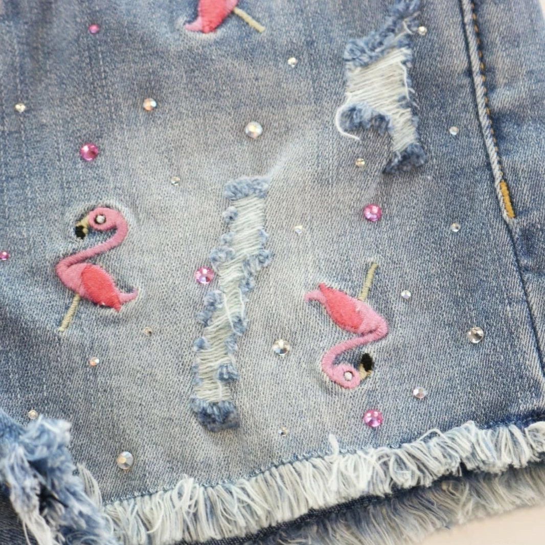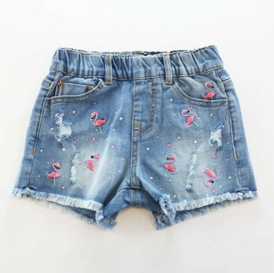 Budget ๐ Itty Bitty Kid’s Boutique Flamingo Denim Shorts ๐ง Girls ๐งจ