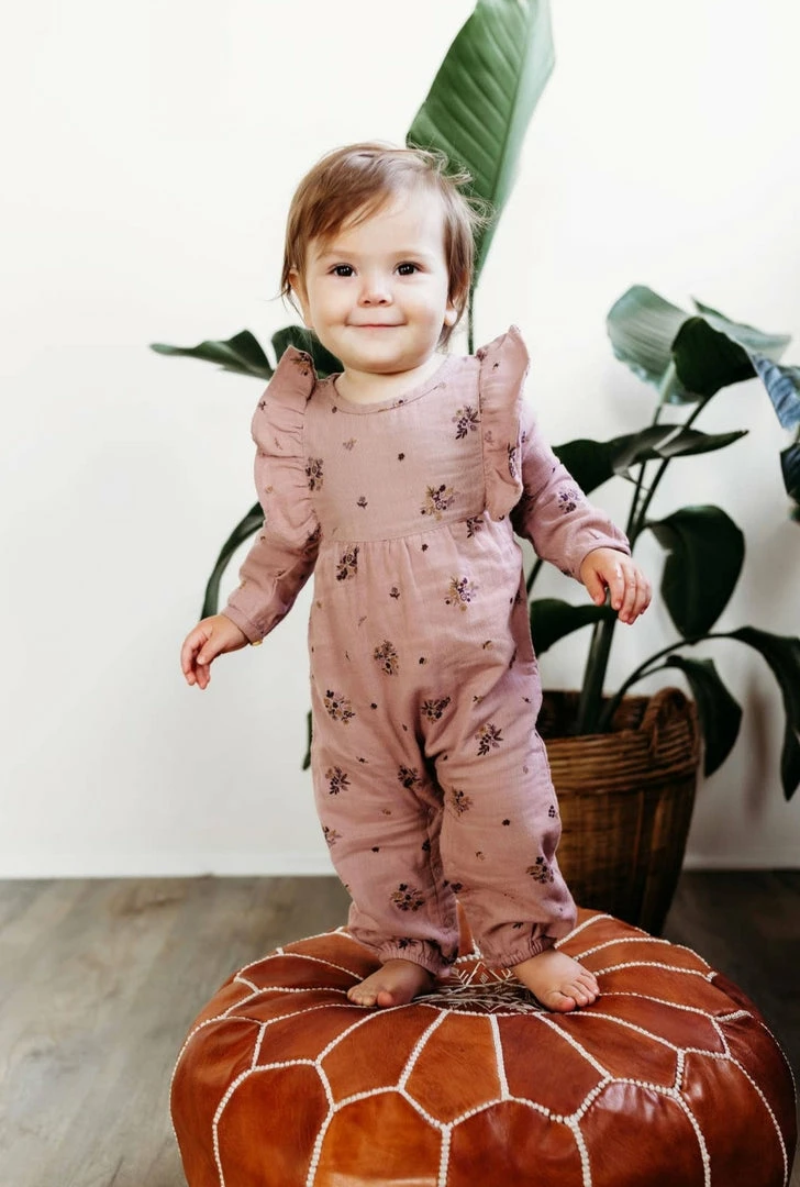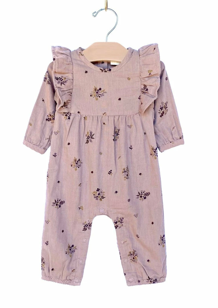 Wholesale ✨ Itty Bitty Kid’s Boutique Infants Long Flutter Romper In Mauve Floral 😍