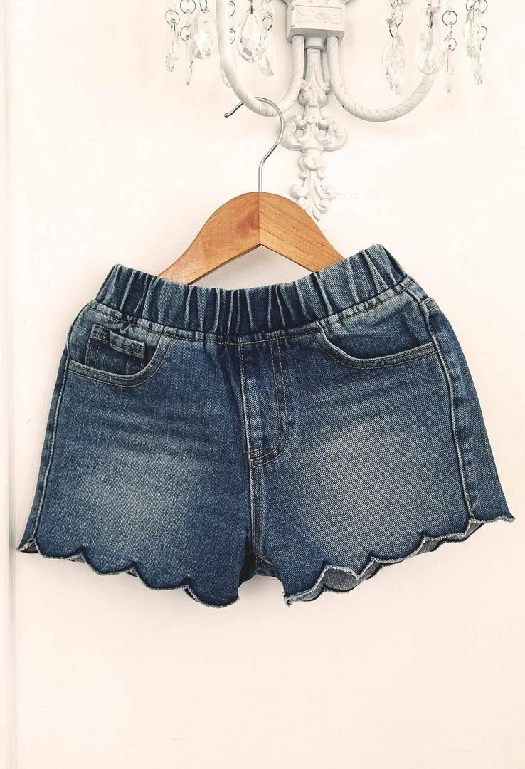 Buy ๐งจ Itty Bitty Kid’s Boutique Scalloped Hemmed Denim Shorts ๐ง Girls ๐คฉ