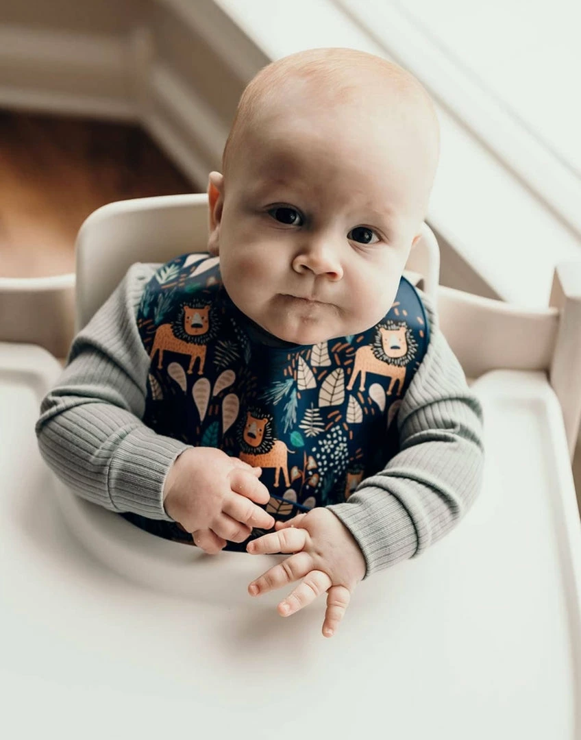 Wholesale ๐ Itty Bitty Kid’s Boutique Zoo Lion Print Silicone Bib With Crumb Catcher โค๏ธ