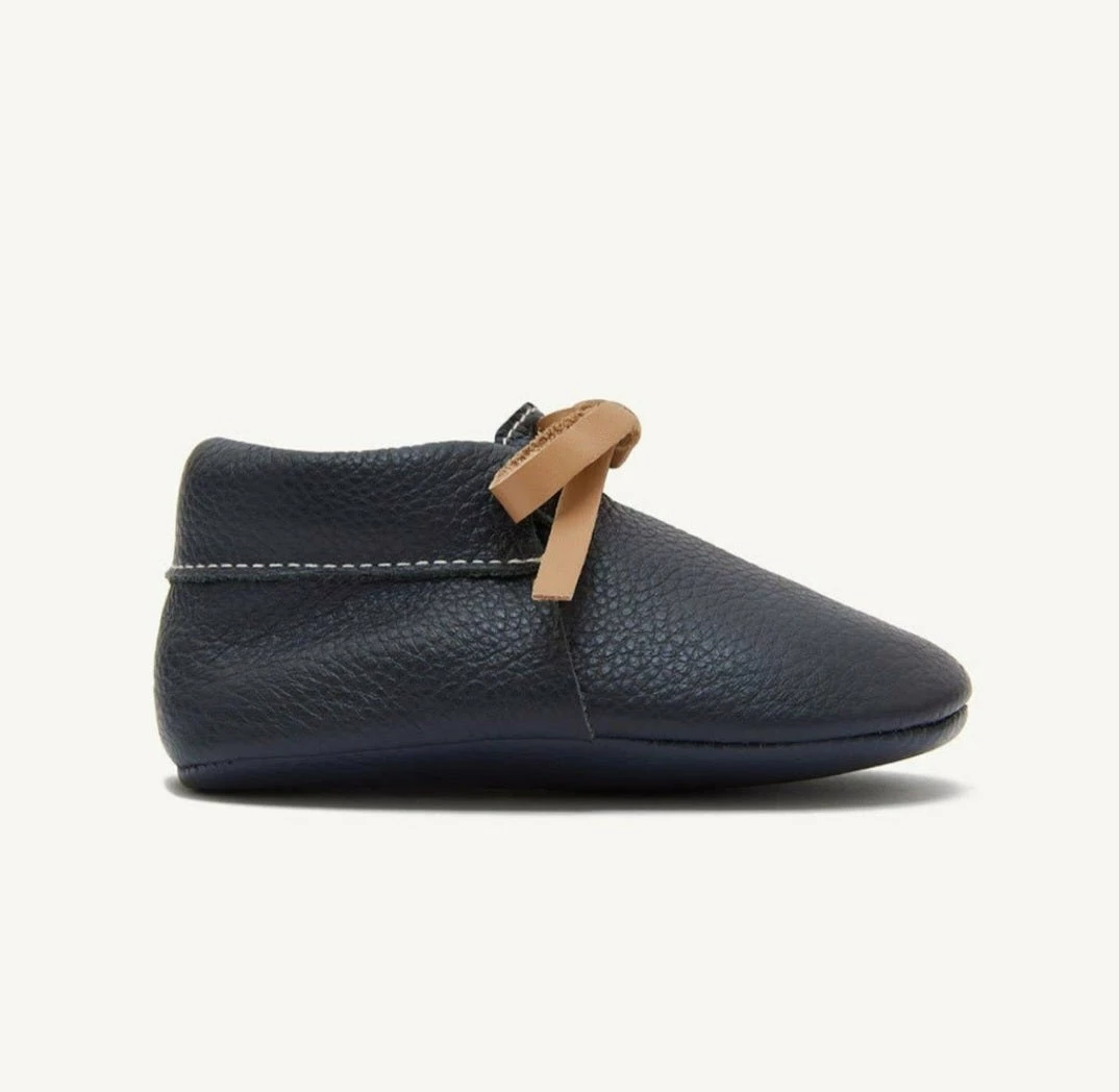 - Non-slip leather soft sole with embossed logo